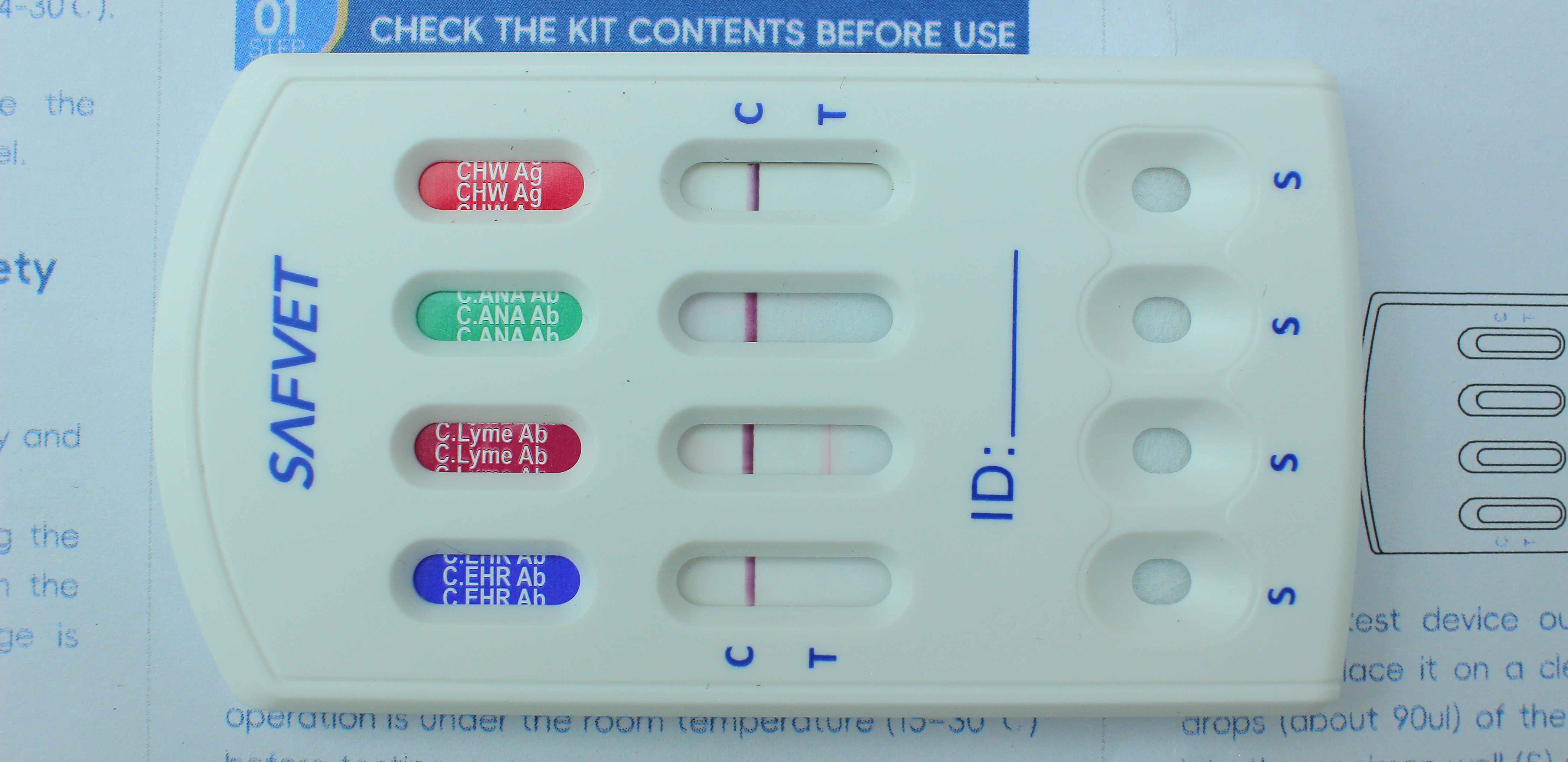 Результат исследования плазмы собаки, укушенной клещом, на трансмиссивные заболевания. Выявлена болезнь Лайма (клещевой боррелиоз).